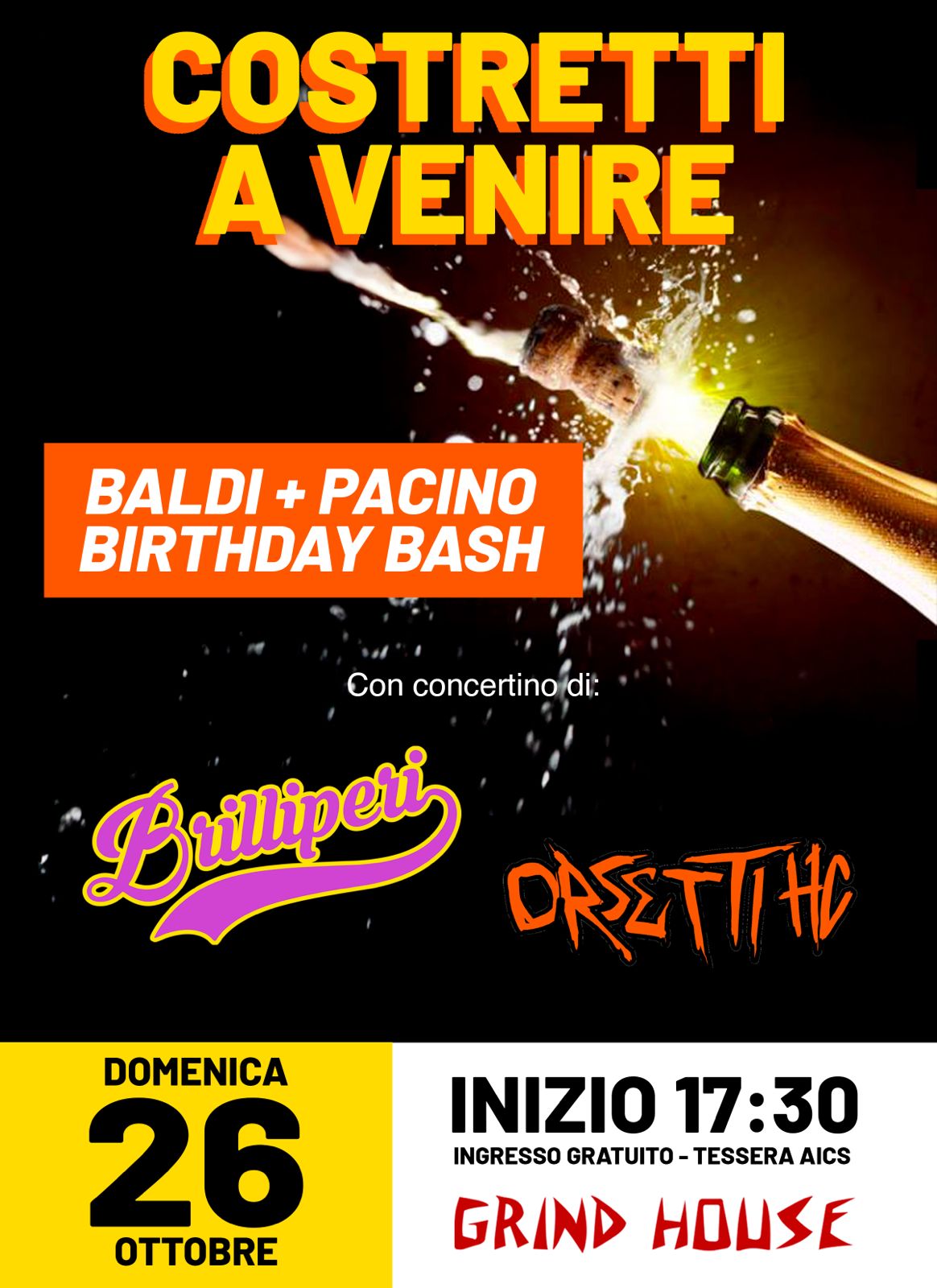 COSTRETTI A VENIRE: BALDI + PACINO BIRTHDAY BASH – DOMENICA 26 OTTOBRE