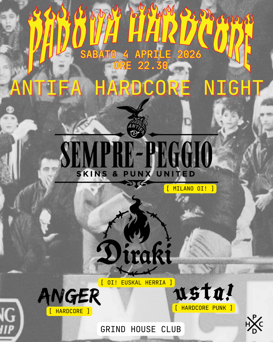 Posted on March 23, 2026 by grindhouseEventi di Aprile 2026 Prosegue il cammino di stagione, iniziamo annunciando due date super, hardcore antifascista e black metal! PDHC #6: Antifa Hardcore Night – Sabato 4 Aprile Padova Black Metal Fest – Sabato 11 Aprile
